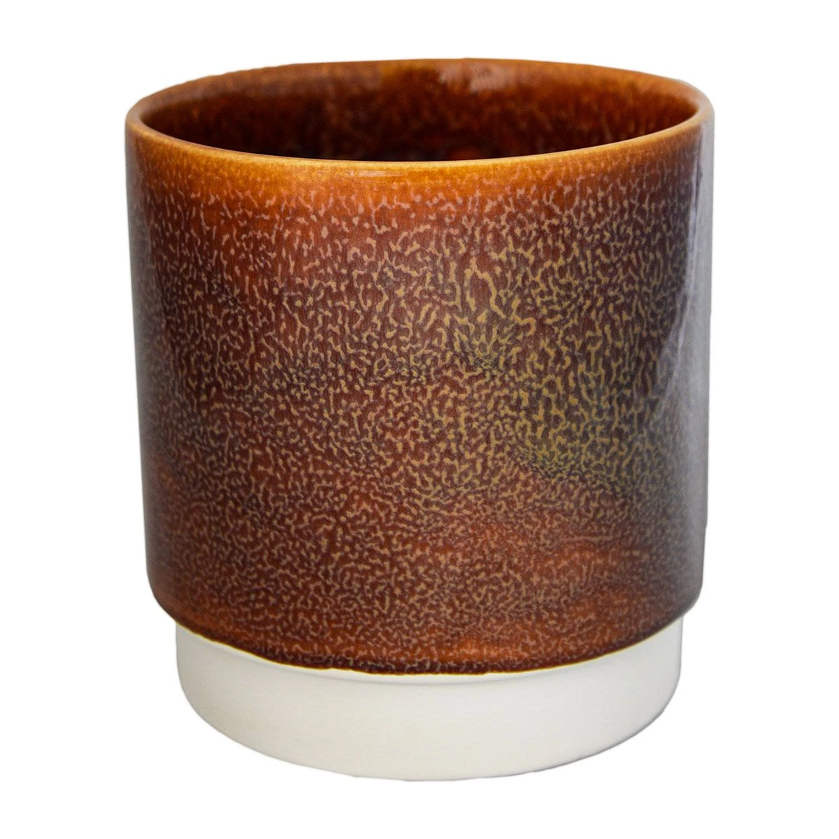 This amber reactive glaze plant pot is the perfect way of adding a splash of colour and texture into your home. This planter features a stylish design, with an amber glazed top and a simplistic white base. Its glazed top also has a speckled design alternating between colours of amber, brown and orange.>