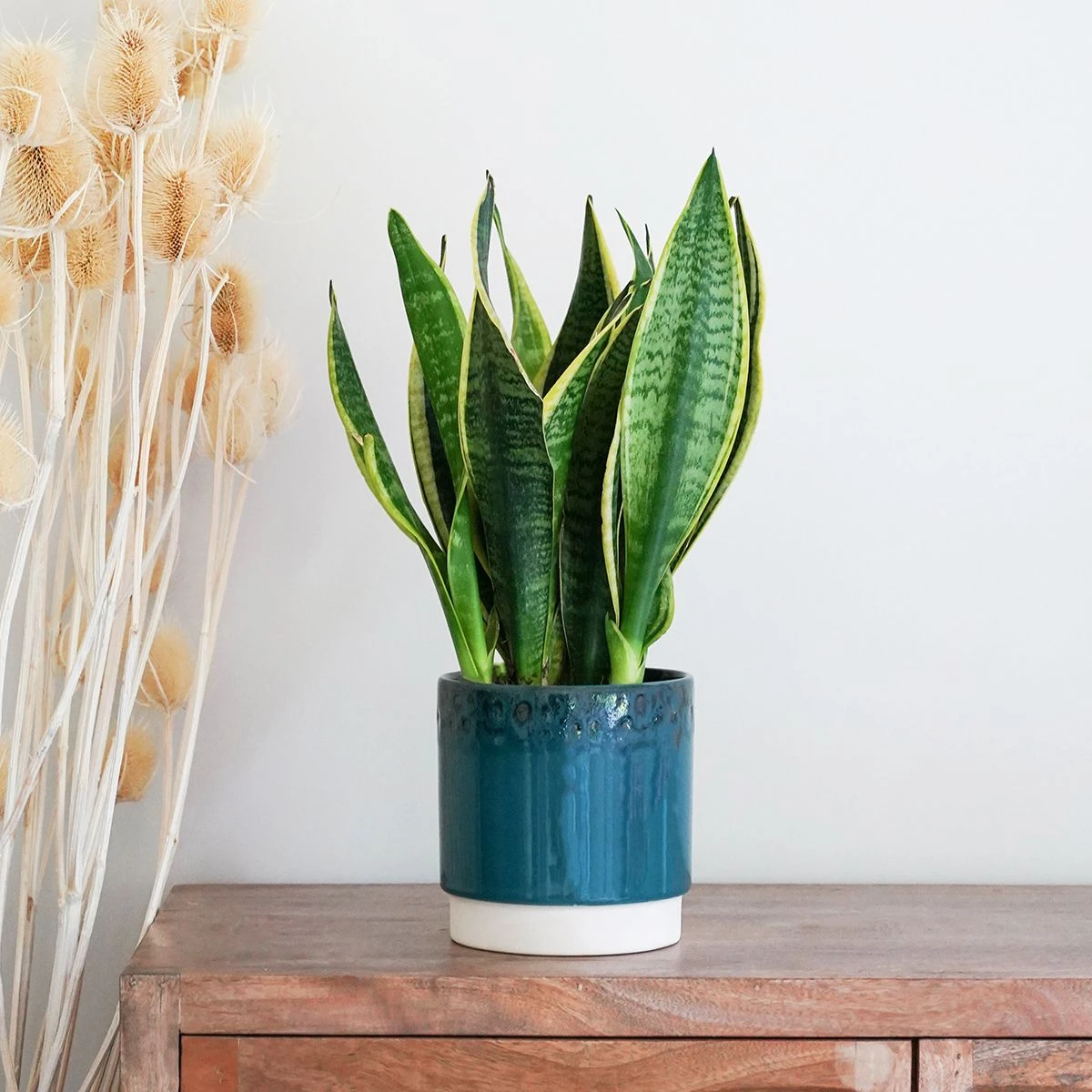 This aqua blue reactive glaze plant pot is the perfect way of adding a splash of colour into your interior décor. This planter features a stylish design, with an aqua blue glazed top and a simplistic white base. Its glazed top also has a speckled design fading from dark blue to light.>