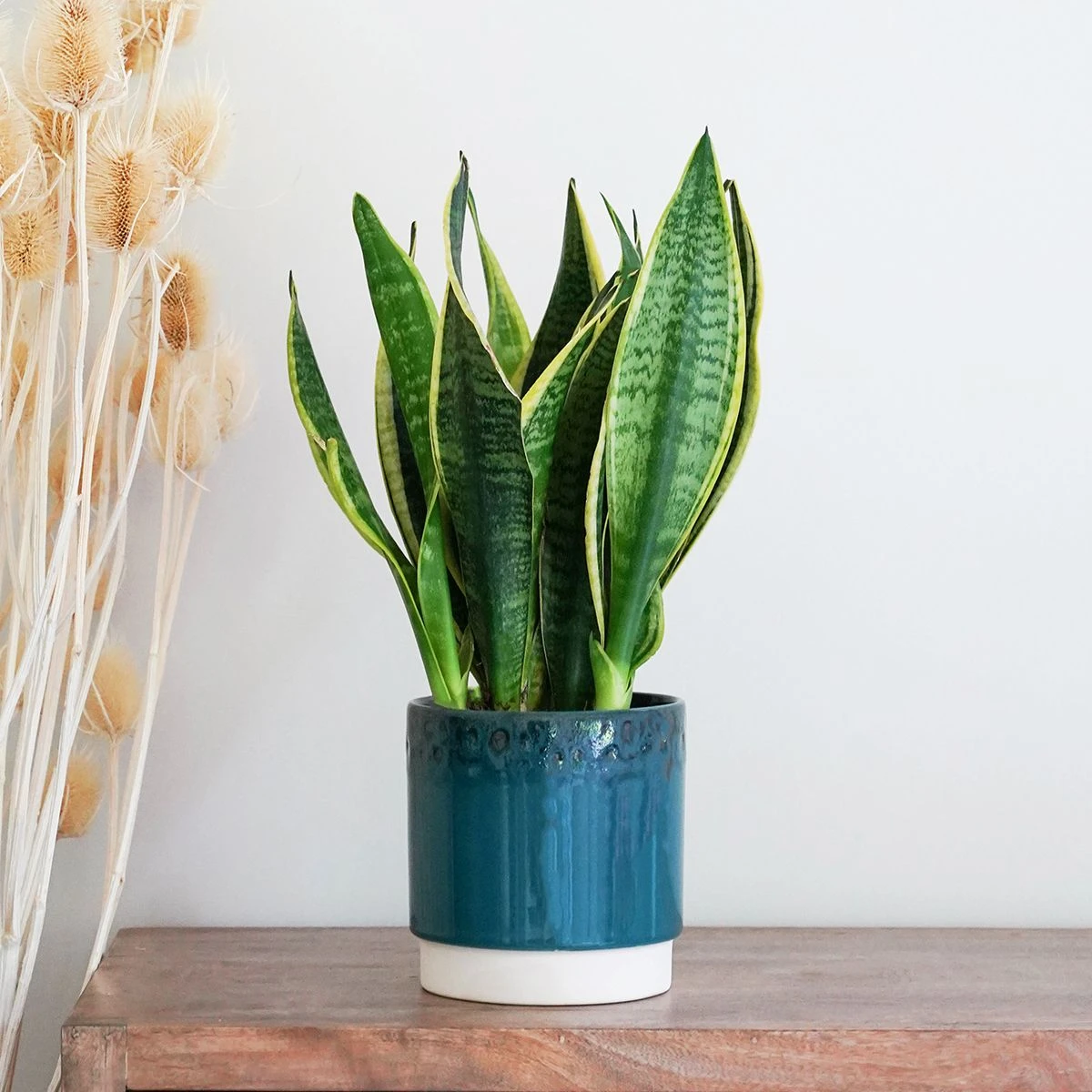 This aqua blue reactive glaze plant pot is the perfect way of adding a splash of colour into your interior décor. This planter features a stylish design, with an aqua blue glazed top and a simplistic white base. Its glazed top also has a speckled design fading from dark blue to light.>