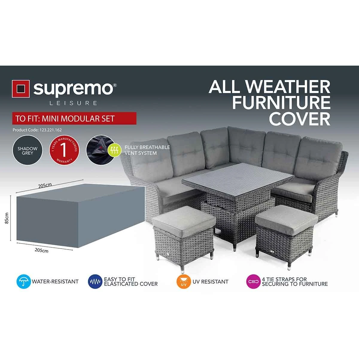 Supremo’s cover collection includes a wide array of sizes and configurations. Supremo covers are specifically engineered with longevity in mind, meaning that your furniture will withstand all seasons whilst protected by one of their covers. Each cover offers complete protection against dirt and debris & has a water-repellent coating.