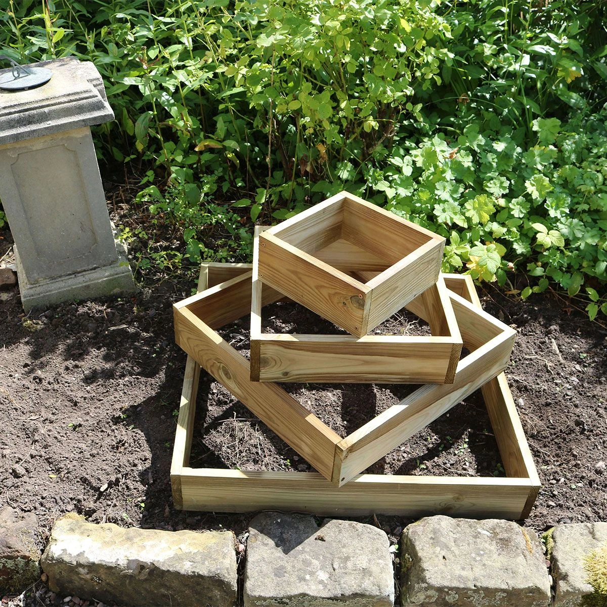 In a garden both height and colour are important and with the Diamond Raised Bed both are possible, The offset timber squares create the illusion of a diamond shape and provide smaller spaces to plant a variety of colourful and cascading plants. The planter is created when the 4 tiers are stacked on top of each other, ideal for creating a cascading flower feature in the garden. A simple idea for a raised bed that is easy to assemble and gives maximum impact.