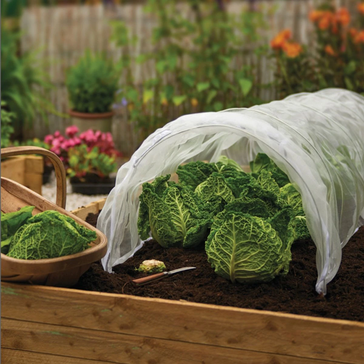 Available from Notcutts, the Grow Tunnel with Mircromesh Insect Cover is a simple to use fine mesh cloche which protects plants against insect attack, sides lift up easily for access and ventilation.