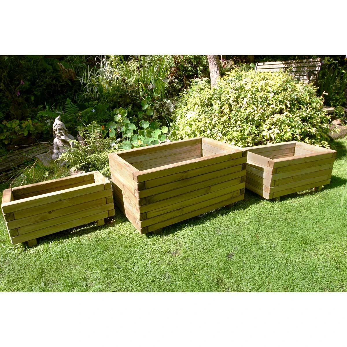 The solid Gresford Planter Set includes three planters in sizes small, medium and large. Pre-built for use straight away to look great on patios or garden decking. Elevated off the ground to keep the planters free from weeds and pests. Pressure Treated for a longer life, as well as made from environmentally friendly timber.