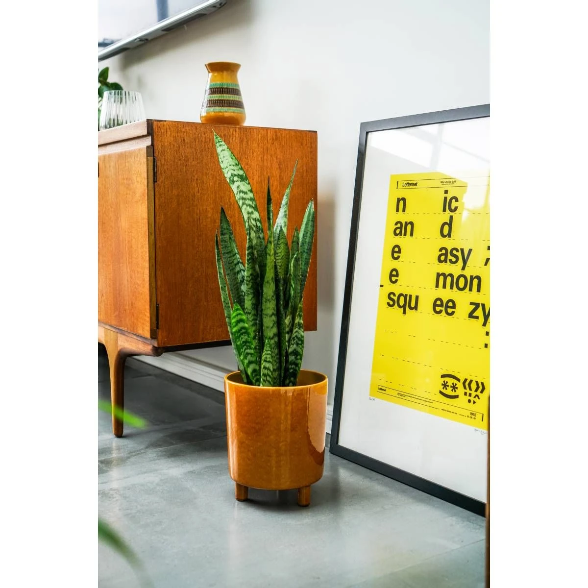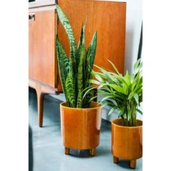Whether on the floor or atop a table, our simplistic Mustard Pisa planter never fails to captivate. Classic in design with a premium glaze and three standing feet, this waterproof planter is suited for both the home and garden, making it perfect for showcasing a wide range of plants and blooms. We’re styling ours with other bowls and planters from the range for a curated mid-century accent look.