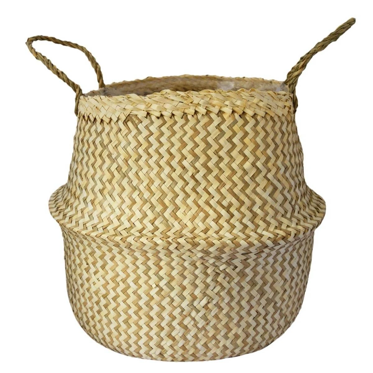 Achieve laidback contemporary styling with our ethically-sourced, lined seagrass chevron basket. Hand finished with a premium quality and woven design, this waterproof planter is perfect for displaying your favourite house plants, with its two handles allowing easy transportation whilst adding extra detail. No plant? No problem. This versatile basket also doubles up as storage.