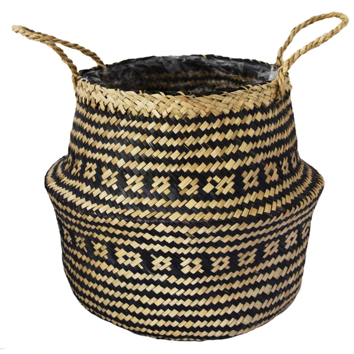 This stylish indoor plant pot basket is the ideal home for your smaller indoor flowers. Enjoy a beautiful addition to your house plant display with this basket, woven with natural seagrass and finished in a tribal pattern with a bold black colour. Find this and many more woven baskets for indoor plants in our wide range.
