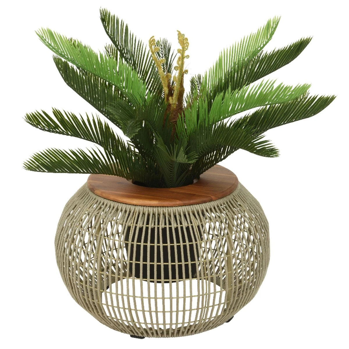 The Seville Side Table is the perfect accompaniment to the Seville Rocking Chair. Like the chair, this table features a weave-covered, powder-coated metal frame and beautifully sculpted, FSC-certified acacia wooden legs. The top of the table is versatile and can either offer a standard table top, or be opened up to be used as a houseplant pot or even an ice bucket for that chilled bottle of wine in the sunshine!