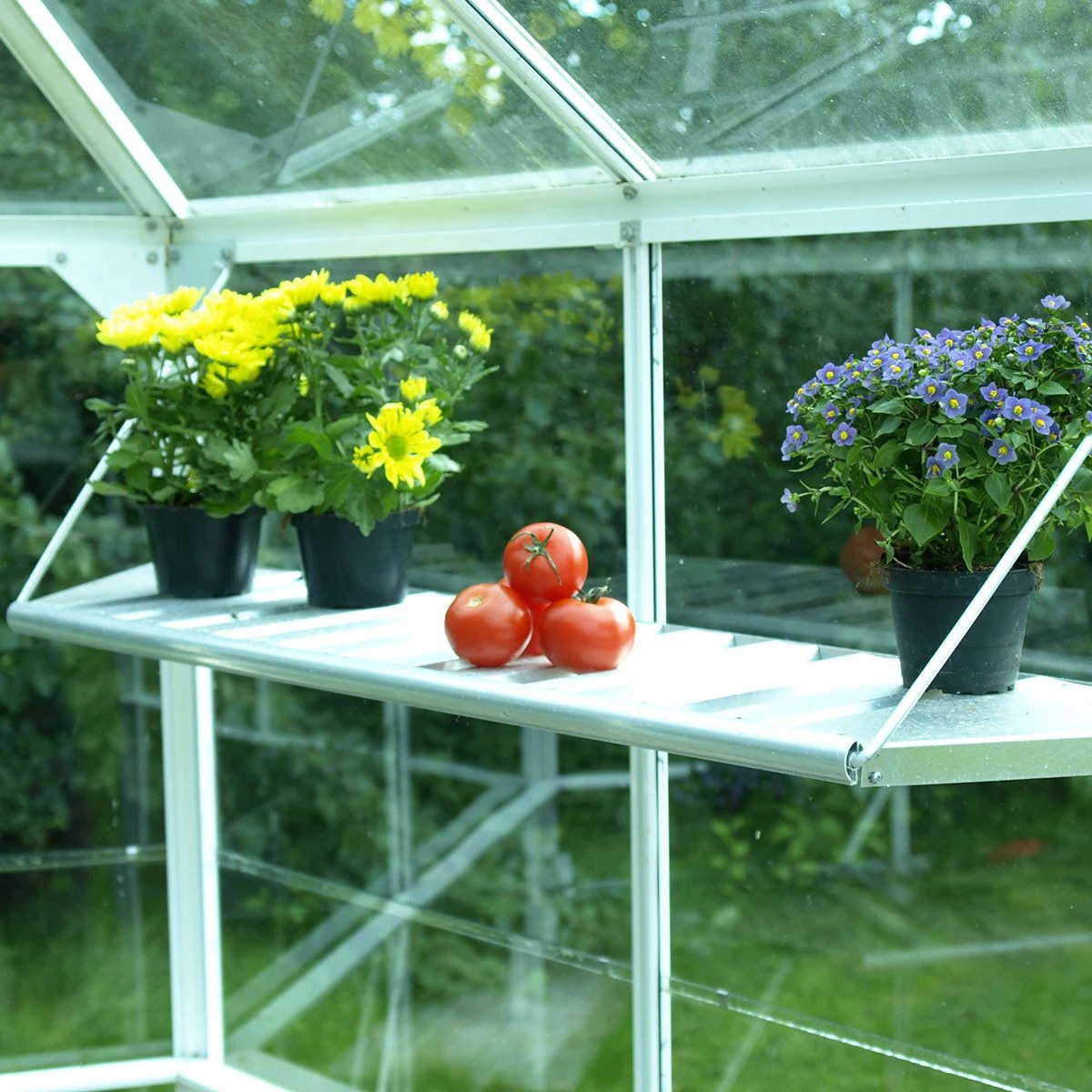 Available from Notcutts comes this Vitavia Folding Aluminium Shelf for Hera 4500. This is a single tier hanging shelf which can be folded flat against the greenhouse frame when not in use. Ideal for those trying to create a little more organisation in their garden.