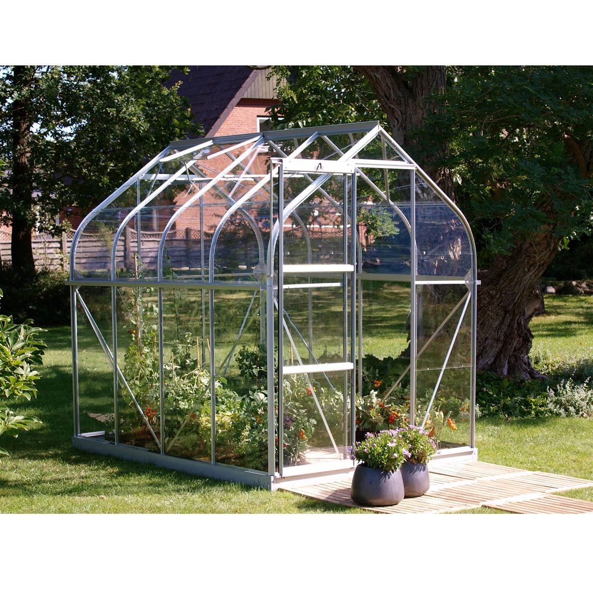 The perfect greenhouse can be an attractive feature to add to your garden, as well as an excellent way to start your seeds early in the year, or extend your growing season into the winter. It can also provide you with a sheltered spot to cultivate more exotic plants, or those vulnerable to the vagaries of the British weather. The Vitavia Orion Greenhouse is an attractive, premium-quality greenhouse with unusual and eye-catching curved eaves. This greenhouse comes in a choice of 2 sizes, and you can also choose from durable powder-coated green aluminium profiles or anodised aluminium, which is known for keeping its pristine look over time, with very little maintenance required. This greenhouse also has a high-quality, smooth-action sliding door.